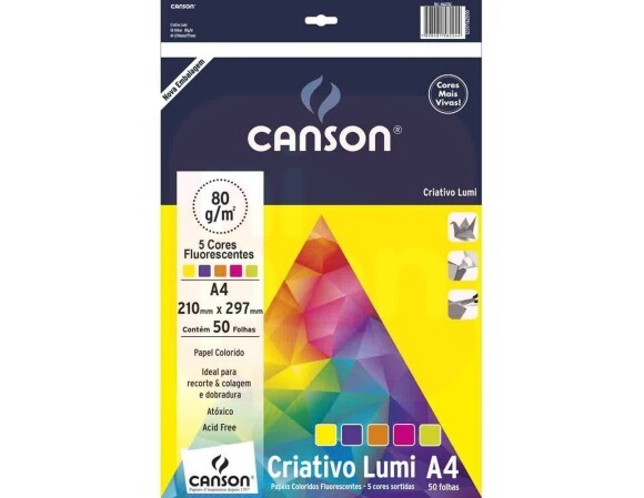 2. Papel Criativo Lumi A4 75g 5 Cores - Canson